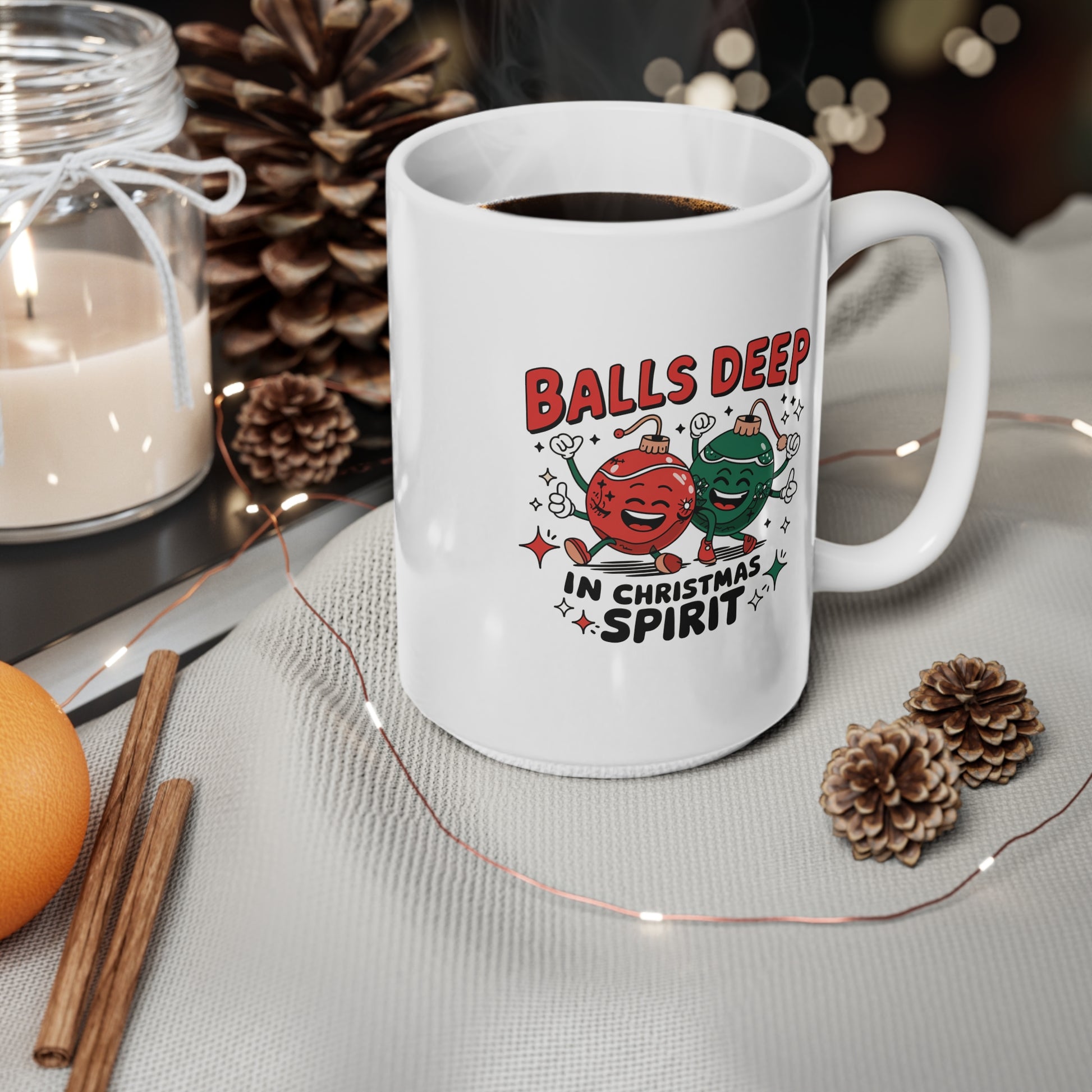 Balls Deep in the Christmas Spirit -Funny Holiday Coffee Mugs, Christmas Gift, Ceramic Cups, Humorous Drinkware, Festive Kitchen Accessories, Unique Gift Idea