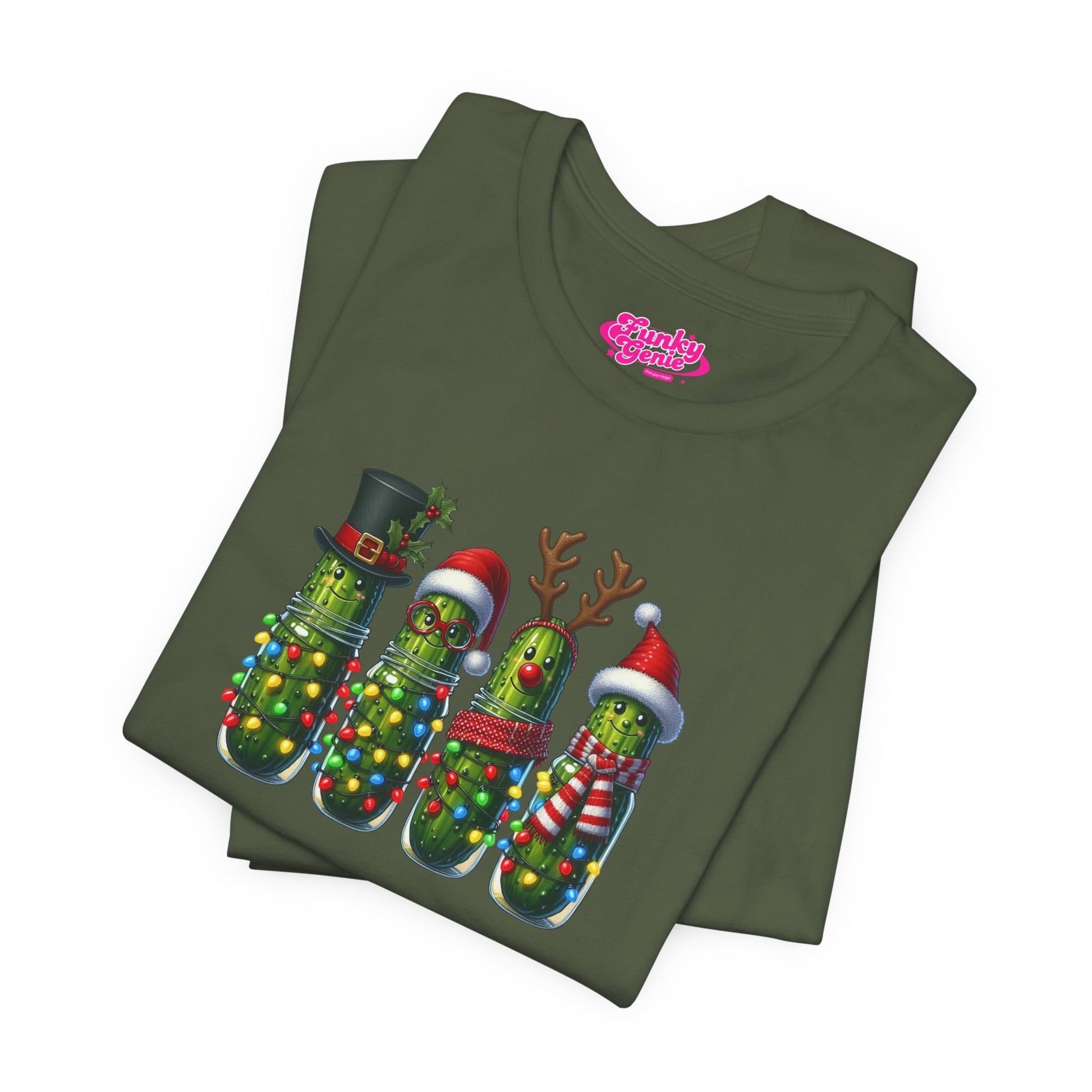 Festive Pickle T-Shirt, Fun Holiday Tee, Great for Christmas Parties, Unique Gift for Food Lovers, Quirky Holiday Apparel