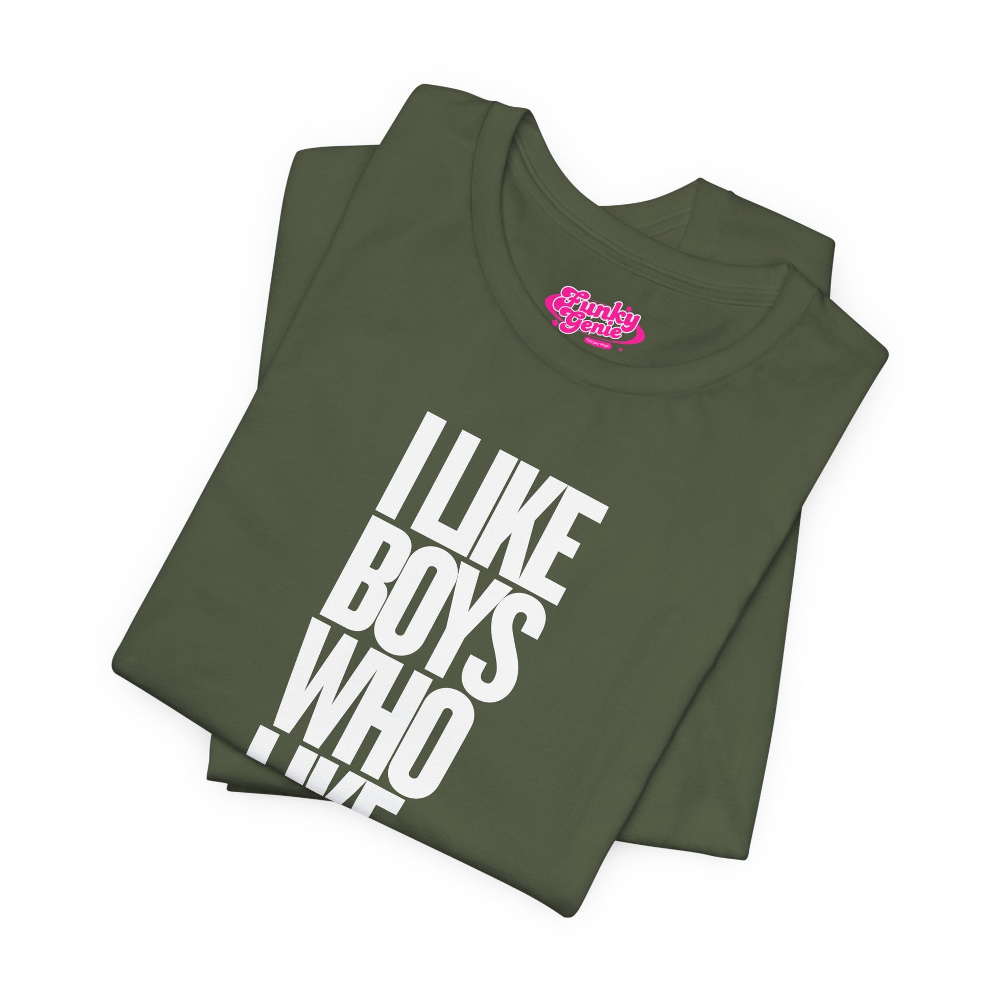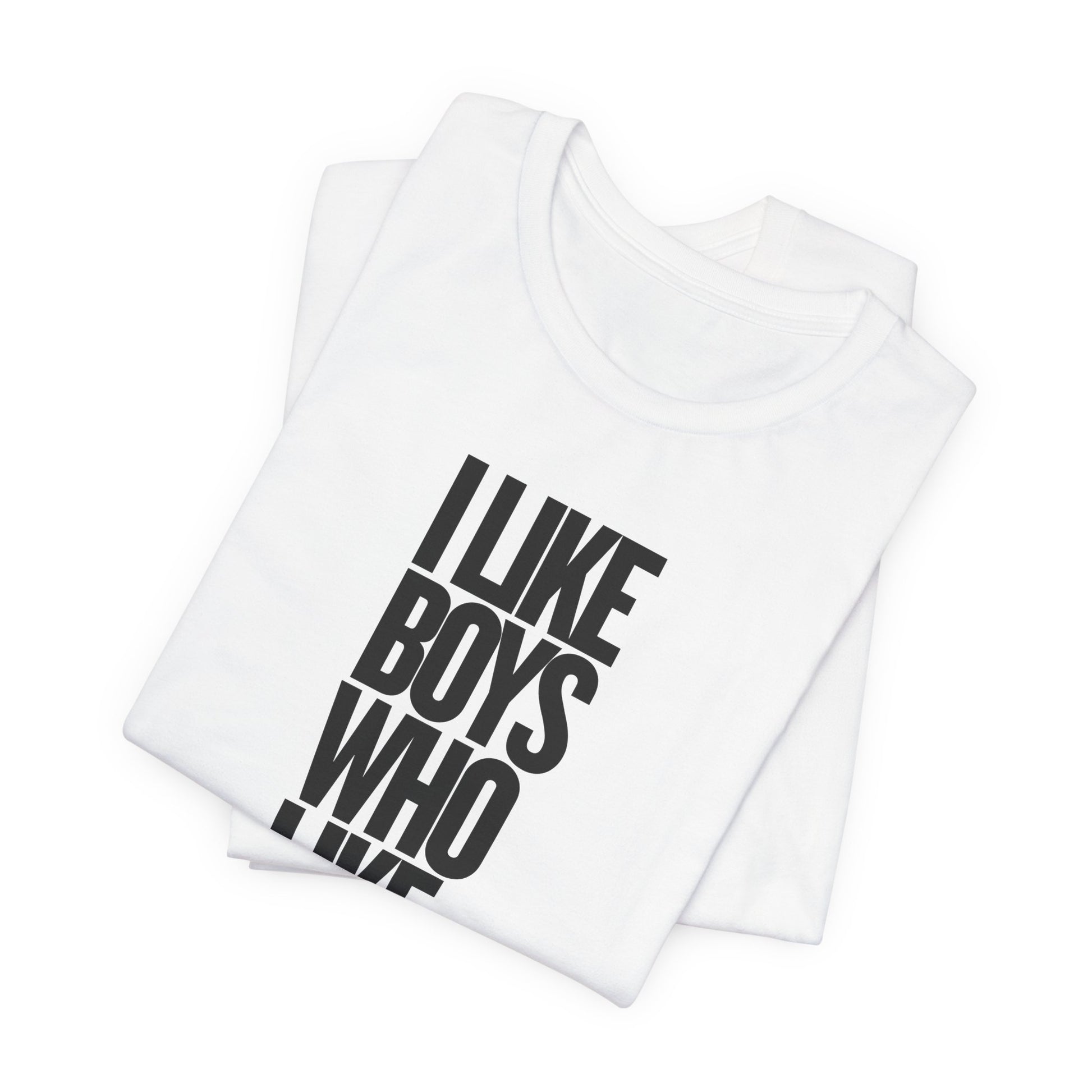 I Like Boys Unisex Tee - LGBTQ Pride Shirt, Casual Graphic T-Shirt, Gender-Neutral Gift, Equality Apparel, Comfortable Wear