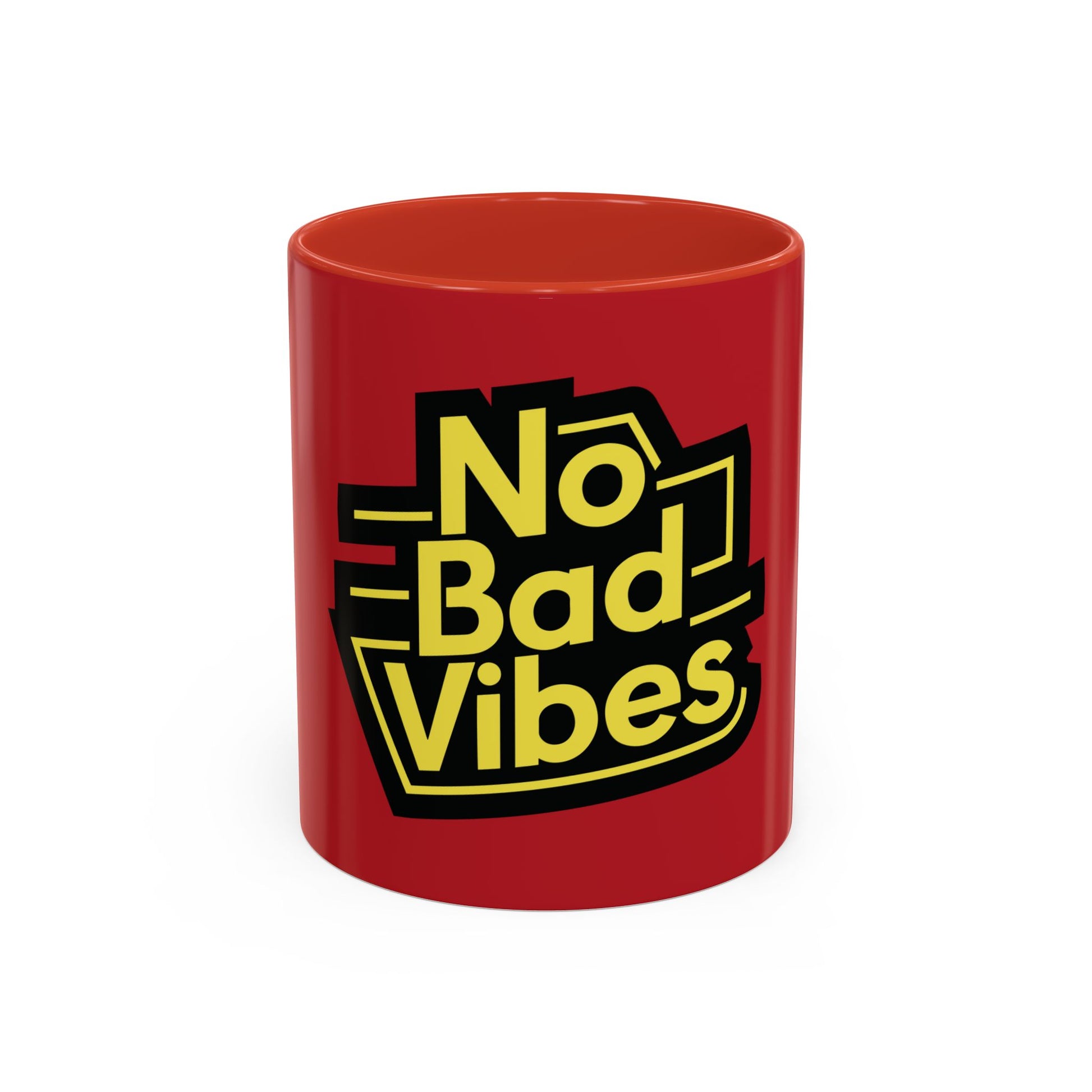No Bad Vibes Accent Coffee Mug — Red 11oz Positive Message