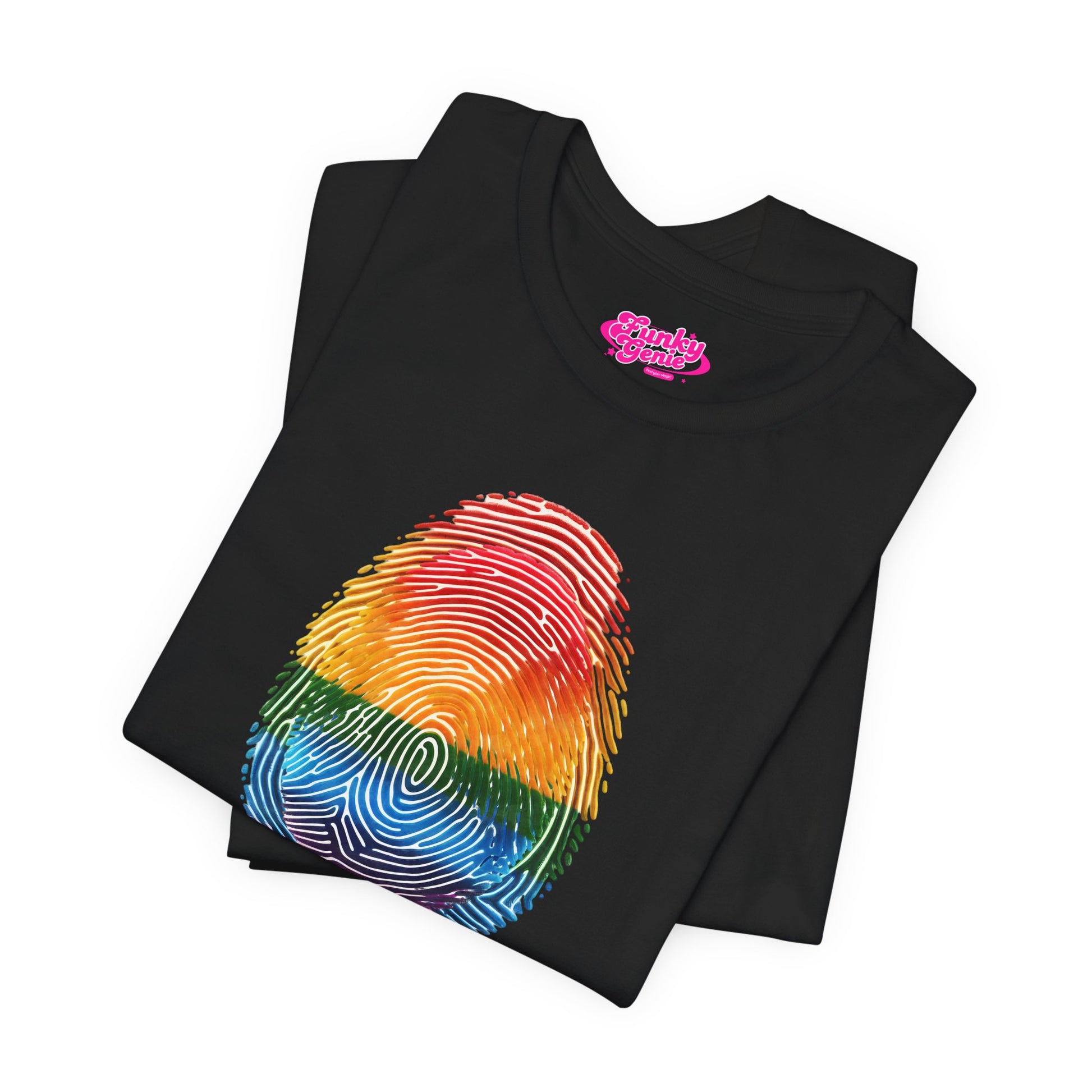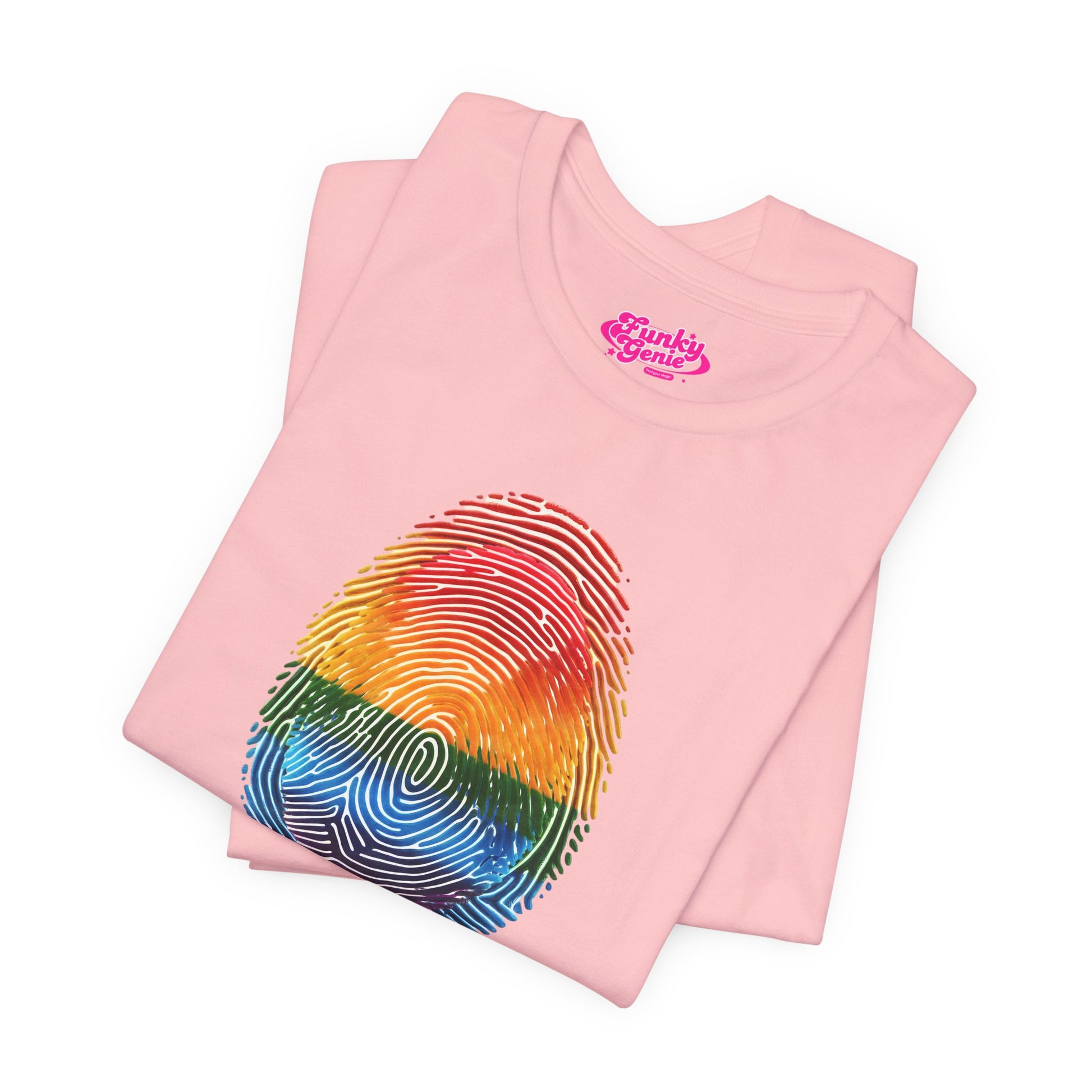 Pride Rainbow Finger Print Tee | Unisex Short Sleeve T-Shirt for LGBTQ+ Celebrations, Summer Vibes, Gift, Casual Wear