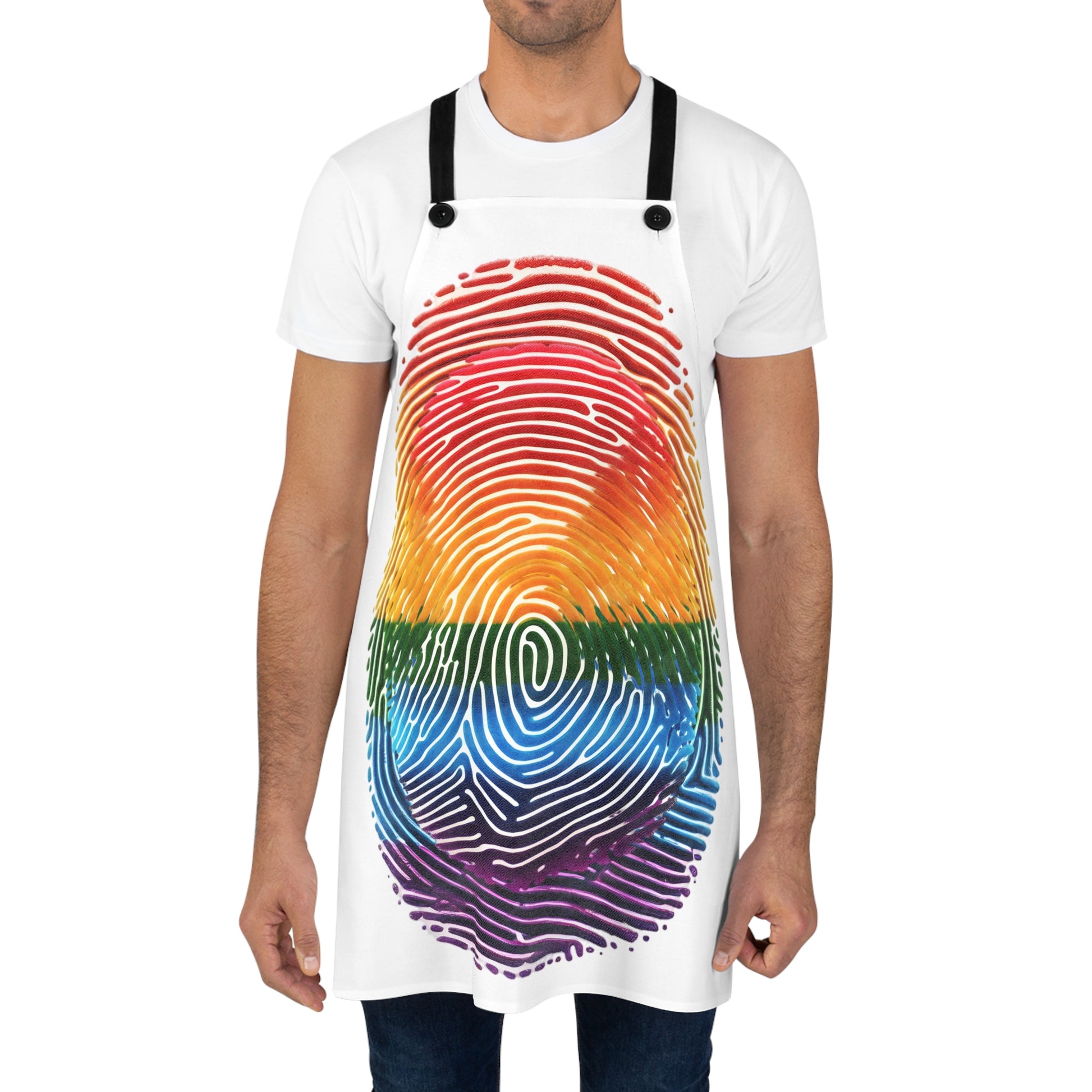 Vibrant LGBT Rainbow Fingerprint Apron, Personalized Kitchen Gift, Pride-Themed Cooking Apron, Unique Foodie Wear, Great for Baking & BBQ