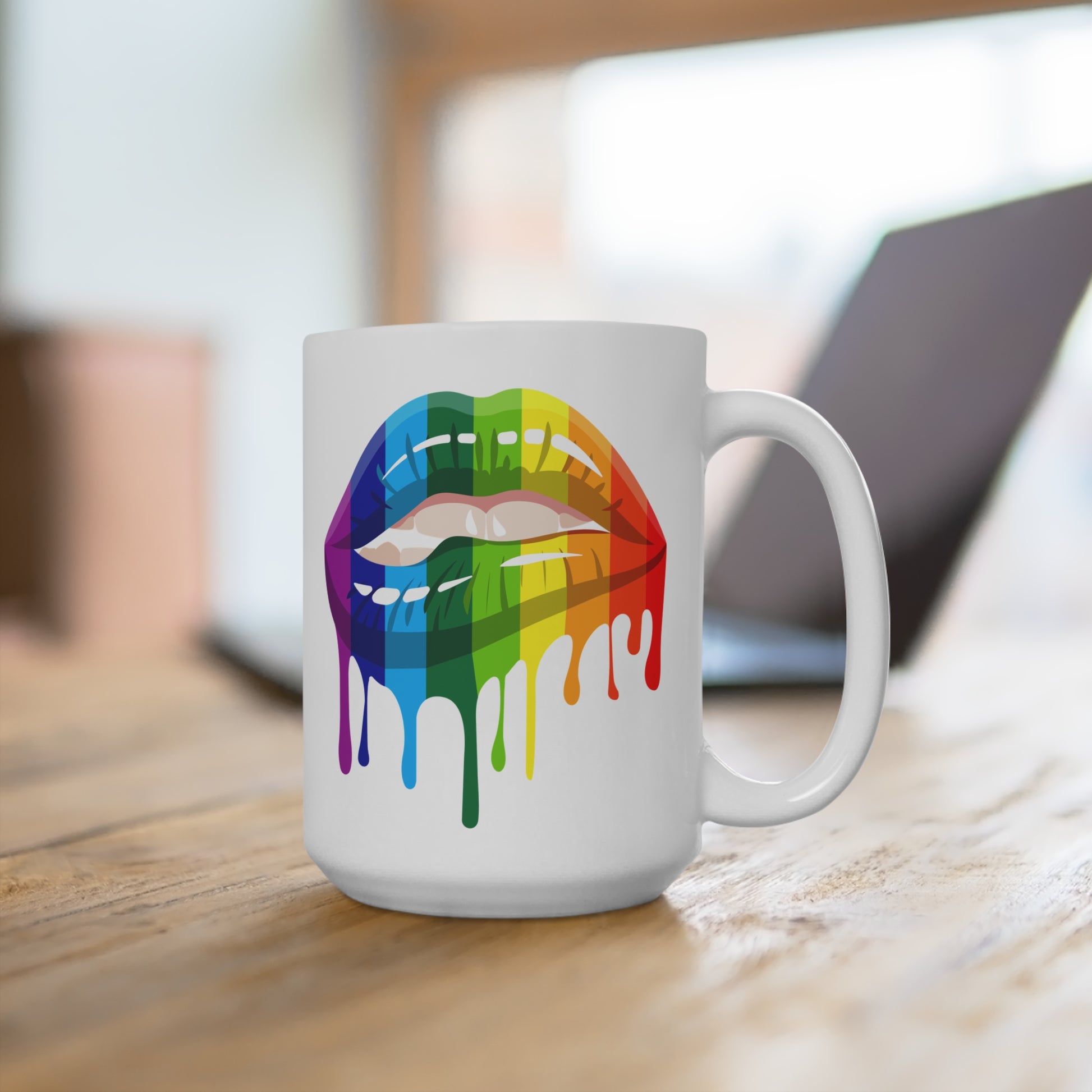 Vibrant Lip Color Ceramic Mug, Rainbow Mug, LGBTQ Pride Gift, Colorful Coffee Cup, Artisanal Drinkware, Unique Gift for Friends